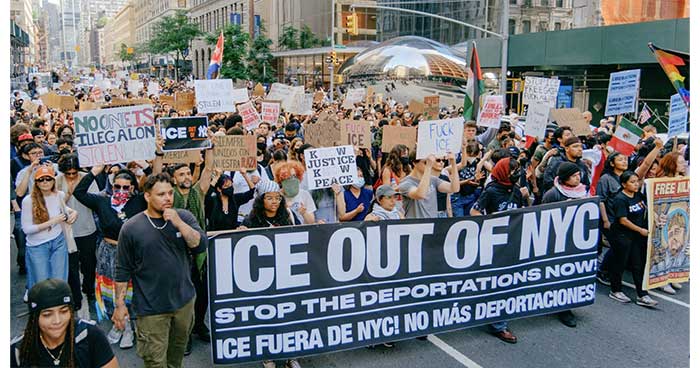 দেশ থেকে আইস বিলুপ্ত করার জাতীয় আহবানে সাড়া দিয়ে নিউইয়র্ক সিটির ইউনিয়ন স্কোয়ারেও ২৩ জানুয়ারি হাড় কাঁপানো শীত উপেক্ষা করে হাজারো মানুষ বিক্ষোভ-সমাবেশ করেছেন। এতে ছিলেন অভিবাসী সমাজের অধিকার ও মর্যাদা নিয়ে কর্মরত ‘দেশিজ রাইজিং আপ অ্যান্ড মুভিংয়ের (ড্রাম) শতাধিক সদস্য। আন্দোলনকর্মী এবং মিনিয়াপলিসের যে সব সংগঠক ট্রাম্প প্রশাসনের প্রতিনিধিদের সহিংসতা সত্ত্বেও টিকে থাকার সংগ্রাম করছেন তাদের ডাকে সাড়া দিয়ে ও তাদের প্রতি একাত্মতা প্রকাশ করেন সবাই। সারা দেশে আইসের সহিংসতা, আগ্রাসন এবং মিনিয়াপলিসে ৩৭ বছর বয়স্ক রেনী নিকোল গুডকে ঠাণ্ডা মাথায় খুন, ঘাতকের দৃষ্টান্তমূলক শাস্তির দাবিতে এম এন, শ্রমিক ইউনিয়ন, ছাত্র, অভিবাসী অধিকার গোষ্ঠী, ধর্মীয় বিশ্বাসী নেতা এবং কমিউনিটি সংগঠন যোগ দেয়।