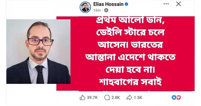 ‘সহিংসতা উস্কে দেওয়া’র অভিযোগে যুক্তরাষ্ট্র প্রবাসী বাংলাদেশি ব্লগার ও অনলাইন অ্যাক্টিভিস্ট ইলিয়াস হোসেনের আরও একটি ফেসবুক পেজ রিমুভ করেছে মেটা। শুক্রবার রাতে ইলিয়াসের প্রায় ২২ লাখ অনুসারীর ভেরিফায়েড একটি পেজ সরিয়ে নেয় ফেসবুক কর্তৃপক্ষ।