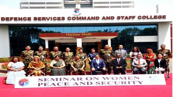 রাজধানীর মিরপুর সেনানিবাসে ডিফেন্স সার্ভিসেস কমান্ড অ্যান্ড স্টাফ কলেজে (ডিএসসিএসসি) ওমেন পিস অ্যান্ড সিকিউরিটি বিষয়ে সেমিনার অনুষ্ঠিত হয়েছে।