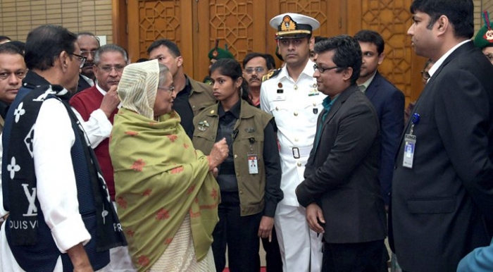 সোমবার (১৭ ডিসেম্বর) বিকেলে  বঙ্গবন্ধু আন্তর্জাতিক সম্মেলন কেন্দ্রে আওয়ামী লীগ আয়োজিত বিজয় দিবসের আলোচনা শেষে ডেকে নিয়ে ভাস্করের সঙ্গে কথা বলেন প্রধানমন্ত্রী। ঢাকা: জাতীয় ঐক্যফ্রন্টের উদ্যোক্তা ও গণফোরাম সভাপতি ড. কামাল হোসেনকে প্রশ্নকারী সেই সাংবাদিক ভাস্কর ভাদুড়ীকে ডেকে সাহস দিয়েছেন আওয়ামী লীগ সভাপতি প্রধানমন্ত্রী শেখ হাসিনা।
