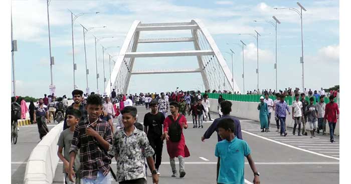কালনা সেতু উদ্বোধনের পর পায়ে হেঁটে পার হতে মানুষের ঢল