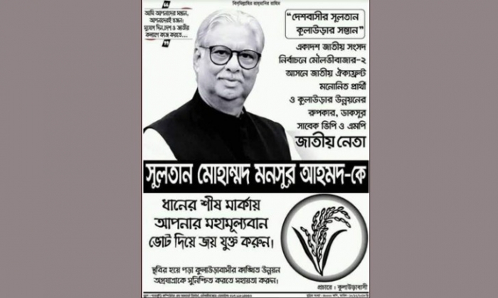 খালেদার ছবি নাই সুলতান মনসুরের নির্বাচনী পোষ্টারে