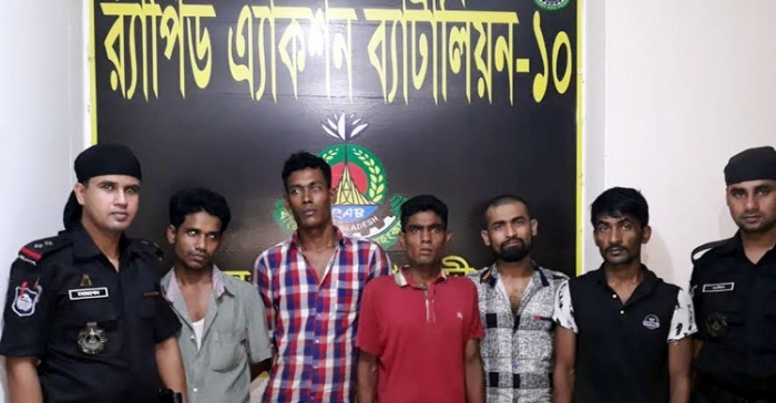 আটকরা হলেন- জহির হোসেন(২৬), মো. রাসেল (২৮), মিজানুর রহমান ওরফে মিজান (৩০), মানিক (২৩) ও আবুল কালাম (২৭)।