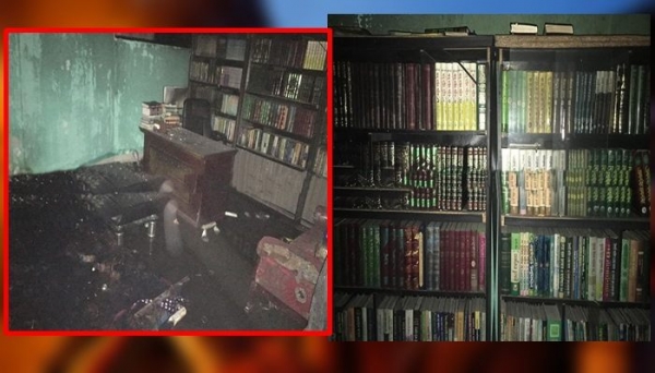 কোরআন ও হাদিসের বই সাজিয়ে রাখা কক্ষটিতে থাকা কয়েকটি চেয়ার এবং ছোট টেবিল পুড়ে কয়লা হয়ে আছে, কিন্তু বুক সেলফ ও বইগুলো আছে ঠিক আগের মতো সাজানো গুছানো! দেখে মনে হবে এখানে যেন কোনো কিছুই হয়নি।