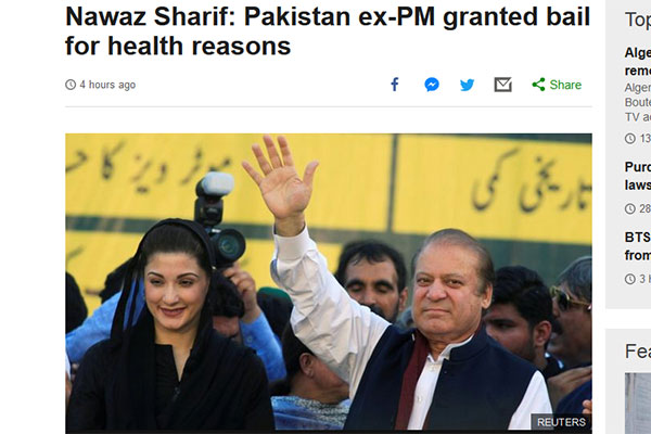 চিকিৎসার জন্য মুক্তি পেলেন নওয়াজ শরিফ, দেশত্যাগে নিষেধাজ্ঞা