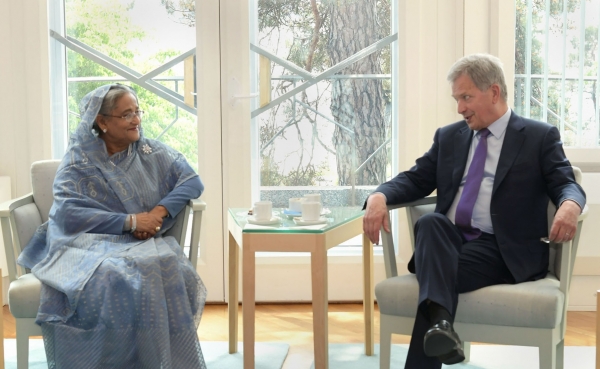 ফিনল্যান্ডের প্রেসিডেন্ট শেখ হাসিনার নেতৃত্বে বাংলাদেশের অর্থনৈতিক অগ্রগতির প্রশংসা করেন। সেই সঙ্গে তিনি শঙ্কা প্রকাশ করেন, যে জলবায়ু পরিবর্তনের কারণে সমুদ্রের উচ্চতা বেড়ে গেলে বাংলাদেশ মারাত্মকভাবে আক্রান্ত হবে।