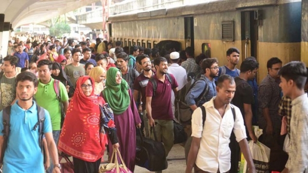 মঙ্গলবার রাজধানীর কমলাপুর ও বিমান বন্দর রেলস্টেশন, গাবতলী, কল্যাণপুর এবং অন্যান্য বাসস্ট্যান্ড ঘুরে দেখা গেছে, সবখানেই ঘরমুখো মানুষের চাপ।