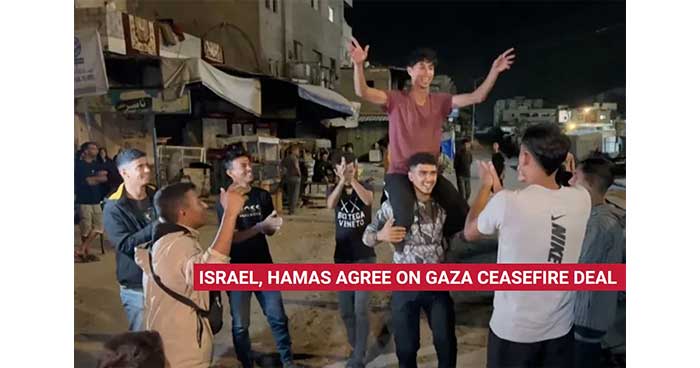 ইসরায়েল ও হামাসের এই যুদ্ধবিরতি চুক্তি সই করার খবর প্রকাশ্যে আসার পর গাজার খান ইউনিসে উল্লাস করতে দেখা গেছে ফিলিস্তিনি যুবকদের।