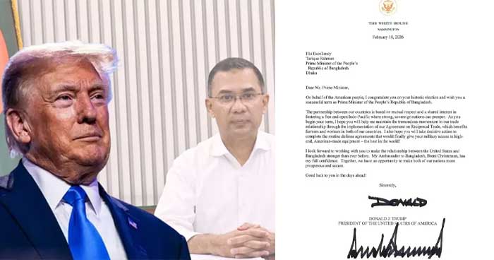 তারেক রহমানকে অভিনন্দন জানিয়ে ডোনাল্ড ট্রাম্পের চিঠি