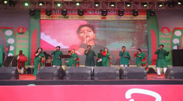 শিল্পীদের গাওয়া ‘ঢেউ হারা এই ঢেউয়ের সাগর পাড়ি দেবো রে, তোমার ভয় নেই মা আমরা, এক সাগর রক্তের বিনিময়ে’ গান সকলকে আবেগ আপ্লুত করে।