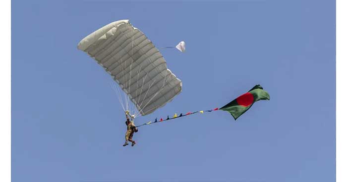 বাংলাদেশ সশস্ত্র বাহিনীর সাহসী ও দক্ষ স্কাইডাইভারদের অংশগ্রহণে, যাদের মধ্যে আশিক চৌধুরী (BIDA)-সহ প্রশিক্ষিত প্যারাট্রুপাররা ছিলেন, এই ব্যতিক্রমী অভিযানে আকাশে ভেসে ওঠে লাল-সবুজের ৫৪টি পতাকা। পুরো উদ্যোগটি পরিকল্পনা ও বাস্তবায়ন করে আর্মড ফোর্সেস ডিভিশন (AFD)।