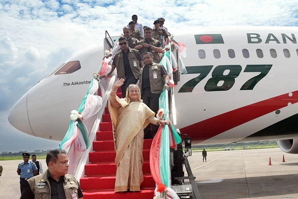 শনিবার বেলা পৌনে ১১টার দিকে প্রধানমন্ত্রীকে বহনকারী বিমান বাংলাদেশ এয়ারলাইন্সের একটি ভিভিআইপি ফ্লাইট শাহজালাল আন্তর্জাতিক বিমানবন্দরে অবতরণ করে।