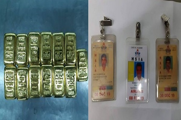 রাজধানীর হজরত শাহজালাল আন্তর্জাতিক বিমানবন্দরে দেড় কেজি সোনার বারসহ ১ যাত্রী ও সিভিল এভিয়েশনের ২ কর্মচারীকে আটক করা হয়। তারা হলেন, দুবাই থেকে আসা যাত্রী মোহাম্মদ হাবিবুর রহমান, সিভিল এভিয়েশনের মালি শহীদুল্লাহ ও হেল্পার হাবিবুর রহমান। এছাড়া, ওই যাত্রীর কাছ থেকে ২শ’ কার্টন বিদেশি সিগারেট উদ্ধার করা হয়।