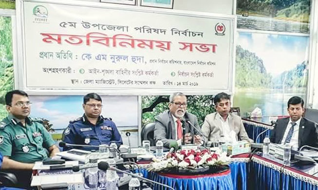 বুধবার বেলা সাড়ে ১১টায় সিলেটের জেলা প্রশাসকের সম্মেলন কক্ষে আইনশৃঙ্খলা বাহিনীর কর্মকর্তা ও নির্বাচন সংশ্লিষ্ট কর্মকর্তাদের অংশগ্রহণে পঞ্চম উপজেলা পরিষদ নির্বাচন বিষয়ে মতবিনিময় সভায় প্রধান অতিথির বক্তব্যে তিনি এসব কথা বলেন।
