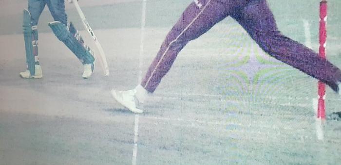 বাংলাদেশকে ১৯১ রানের লক্ষ্য দিয়ে ওয়েস্ট ইন্ডিজ দ্বিতীয় ওভারে রান আউট করেন তামিমকে। তৃতীয় ওভারে সৌম্য সরকার স্ট্রাইকে থেকে মারতে না পারলেও শেলডন কট্রেল অতিরিক্ত রান দিলেন দুটি ওয়াইড ও একটি নো বলে। ওই ওভারে মাত্র ৫ রান নেওয়ার ক্ষতি পরের ওভারে পুষিয়ে নিতে শুরু থেকে মারকুটে ছিলেন লিটন। প্রথম বলে কভার দিয়ে একটি ছয় মারেন তিনি, দ্বিতীয় বলে রান না নিলেও পরেরটি চার। পঞ্চম বলে আরও একটি বাউন্ডারি হাঁকান লিটন, যদিও সেটি ছিল নো বল। রিপ্লেতে দেখা যায় থমাসের পা ছিল দাগে। এনিয়ে মাথা ঘামায়নি উইন্ডিজ। ফ্রি হিটে ছক্কা মারেন বাংলাদেশি ওপেনার। শেষ বলটি থমাস ওয়াইড দেন। আরও একবার থমাসের বল পেয়ে উড়িয়ে মারেন লিটন, ধরা পড়েন মিড অফে। কিন্তু আবারও নো বল, ওভার স্টেপিং। যদিও রিপ্লেতে দেখা গেছে থমাসের পা ছিল দাগেই।
