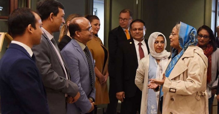 এ সময় নেত্রীকে কাছে পেয়ে খুশিতে উচ্ছ্বসিত হন আওয়ামী লীগের নেতাকর্মীরা। হোটেলের সামনে দাঁড়িয়ে প্রধানমন্ত্রীর সঙ্গে প্রবাসীদের কুশল বিনিময় হয়। উপস্থিত ছিলেন সর্ব ইউরোপ আওয়ামী লীগের সভাপতি এম নজরুল ইসলাম, সাধারণ সম্পাদক মজিবুর রহমান, ফ্রান্স আওয়ামী লীগ সভাপতি বেনজির আহমেদ সেলিম।