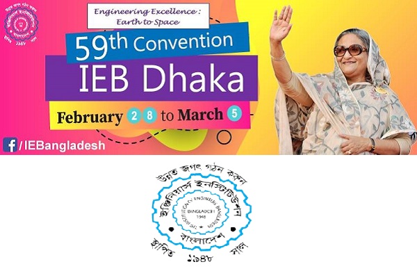 ইঞ্জিনিয়ার্স ইনস্টিটিউশন বাংলাদেশের (আইইবি) চারদিনের ৫৯তম কনভেনশন উদ্বোধন করবেন প্রধানমন্ত্রী শেখ হাসিনা।