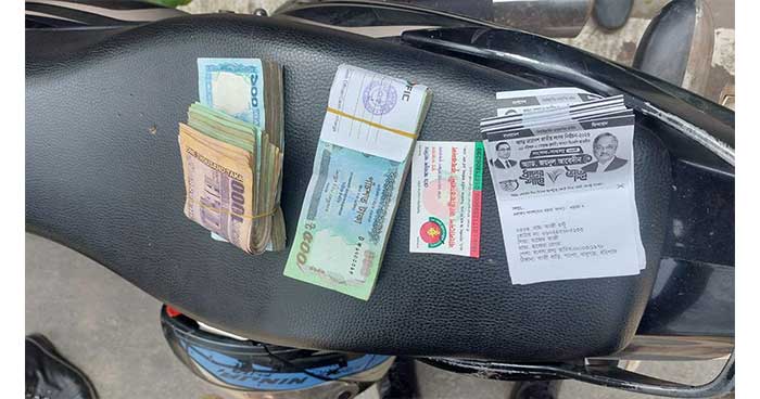 বিমানবন্দর থানা পুলিশের ওসি মিজানুর রহমান জানান, আটককৃতরা নিজেদের বিএনপি কর্মী বলে পরিচয় দিয়েছেন। তারা হলেন হুমায়ুন গাজী ও এনায়েত কাজী। তাদের কাছ থেকে নগদ অর্থ ছাড়াও বরিশাল-২ (বাবুগঞ্জ-মুলাদী) আসনে বিএনপির প্রার্থী অ্যাডভোকেট জয়নাল আবেদিনের লিফলেট ও ভোটার স্লিপ পাওয়া যায়।