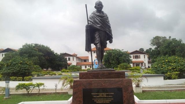 বিশ্বব্যাপী অহিংস আন্দোলনের নেতা হিসেবে পরিচিত মহাত্মা গান্ধীর ভাস্কর্য দুই বছর আগে আক্রায় বিশ্ববিদ্যালয় প্রাঙ্গণে উন্মোচন করা হয়। ঘানা ও ভারতের মধ্যে সম্পর্কের সেতুবন্ধ হিসেবে এটি স্থাপন করা হয়েছিল।