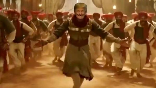 কিন্তু বাজিরাওয়ের ভূমিকায় রণবীর সিং এর জায়গায় দেখা যাচ্ছে মার্কিন প্রেসিডেন্ট ডোনাল্ড ট্রাম্পকে! ওই গানের তালে হাসিমুখে নেচে বেড়াচ্ছেন তিনি। নাচের ভঙ্গিও সিনেমার দৃশ্যে রণবীর সিং এর সঙ্গে হুবহু মিলে যাচ্ছে।