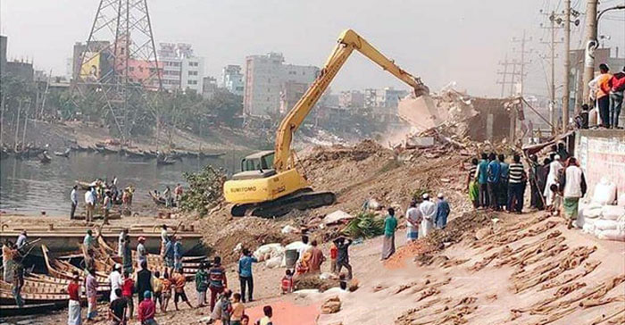 বুড়িগঙ্গার তীরে উচ্ছেদ অভিযান চলছে