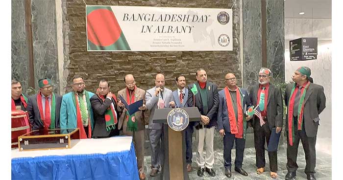 লাল-সবুজের পতাকা হাতে বিপুলসংখ্যক প্রবাসীর উপস্থিতিতে নিউইয়র্ক স্টেট সিনেট হাউজে গত ২৩ মার্চ ‘বাংলাদেশ ডে’ উদযাপিত হয়েছে। এতে মূলত ব্রংকস কমিউনিটির নেতৃবৃন্দ অংশ নেন। গত ১৪ বছর ধরে প্রতিটি স্বাধীনতা দিবসেই নিউইয়র্ক স্টেটের রাজধানী আলবেনীতে নানা আয়োজনে বাংলাদেশের স্বাধীনতা দিবস উদযাপিত হচ্ছে ‘বাংলাদেশ ডে’ হিসেবে। এবারও স্টেট সিনেটে গত ১০ মার্চ বাংলাদেশের স্বাধীনতা দিবসের ওপর রেজুলেশন পাস হয়। যেখানে স্বাধীনতার স্থপতি হিসেবে বঙ্গবন্ধু শেখ মুজিবুর রহমানের নাম এবং বঙ্গবন্ধুর পক্ষে মেজর জিয়াউর রহমান কর্তৃক স্বাধীনতার বার্তা রেডিওতে পাঠের কথাও উল্লেখ করা হয়েছে।