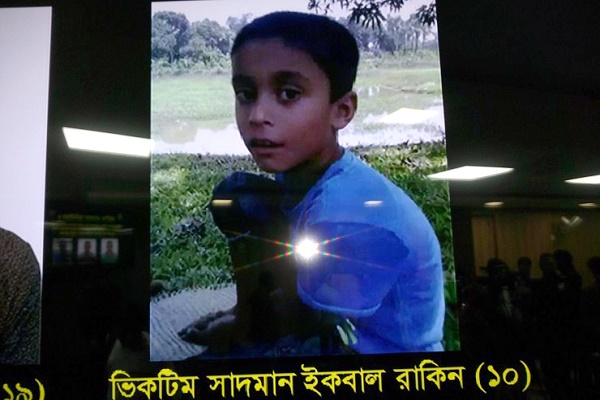 গত ৫ ডিসেম্বর গাজীপুরের শ্রীপুর উপজেলার প্রহ্লাদপুর ইউনিয়নের ফাউগানপুরের বাড়ি থেকে অপহরণ করা হয় ফাউগান প্রাথমিক বিদ্যালয়ের পঞ্চম শ্রেণির শিক্ষার্থী সাদমান ইকবাল রাকিনকে। ওই দিন সন্ধ্যায় রাকিনের বাবা সৈয়দ শামীম ইকবালের কাছে মোবাইল ফোনে দশ লাখ টাকা মুক্তিপণ চাওয়া হয়। কিন্তু টাকা দিতে দেরি হওয়ায় তাকে হত্যা করে মরদেহ পাশের বাঁশ বাগানে পুঁতে রাখা হয়।