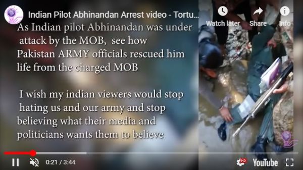 তবে প্রাণে বেঁচে গেলেও তিনি ধরা পড়েন পাকিস্তানী গ্রামবাসীদের হাতে। প্রকাশিত ভিডিওটিতে দেখা যায় ভারতীয় পাইলটকে ঘিরে নয়-দশজন স্থানীয় গ্রামবাসী দাঁড়িয়ে আছেন।