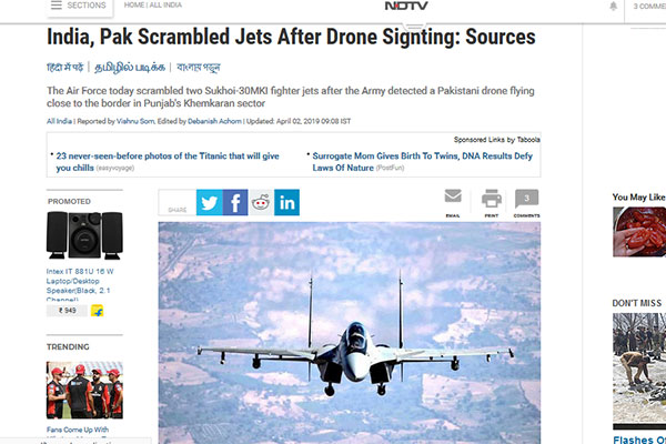 খবরে বলা হয়, ঘটনার সূত্রপাত হয় একটি পাকিস্তানি ড্রোন ভারতের আকাশসীমায় ঢুকে পড়াকে কেন্দ্র করে। পাক ওই ড্রোন ভারতীয় আকাশে প্রবেশের সঙ্গে দেশটির বিমানবাহিনী সুখোই এমকেআই ও মিরাজ যুদ্ধবিমান মোতায়েন করে। পরে ভারতীয় যুদ্ধবিমান দেখে ফিরে যায় ওই দুই পাক এফ-১৬ যুদ্ধবিমান।