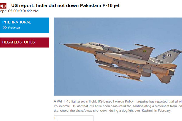বৃহস্পতিবার যুক্তরাষ্ট্রের ম্যাগাজিন ফরেন পলিসি’র ওয়েবসাইটে প্রকাশিত একটি প্রতিবেদনে এই তথ্য জানানো হয়েছে। এতে বলা হয়, সম্প্রতি যুক্তরাষ্ট্রের পক্ষ থেকে সরেজমিনে পাকিস্তানের এফ-১৬ বিমানগুলো গুনে দেখা হয়েছে এবং এগুলোর একটিও খোয়া যায়নি।