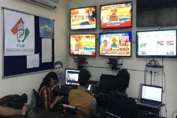 এ মাসেই বিজেপির শক্ত ঘাঁটি হিসেবে বিবেচিত তিনটি রাজ্যের বিধানসভা নির্বাচনে জয় পেয়েছে কংগ্রেস। এ তিন রাজ্যের একটি হলো রাজস্থান। সেখানে কংগ্রেসের অনলাইন প্রচারণা চালানোর একটি শিবির পরিদর্শন করে রয়টার্স। বার্তা সংস্থাটি জানায়, দেয়ালে কিছু টেলিভিশন স্ক্রিন লাগানো ছিল। বিভিন্ন সংবাদভিত্তিক চ্যানেল ও সামাজিক যোগাযোগমাধ্যমের পোস্টগুলো সেইসব স্ক্রিন দেখে নির্বাচন করা হতো। তিন সদস্যের অডিও, ভিডিও এবং গ্রাফিক বিশেষজ্ঞের একটি দল প্রচারণার অনুষঙ্গগুলোর নকশা করতো এবং তা বিভিন্ন ওয়েবসাইটে ছাড়া হতো। দলীয় কর্মীদের নির্দেশনা দিতে অন্য স্বেচ্ছাসেবকরা হোয়াটসঅ্যাপ ব্যবহার করতো।