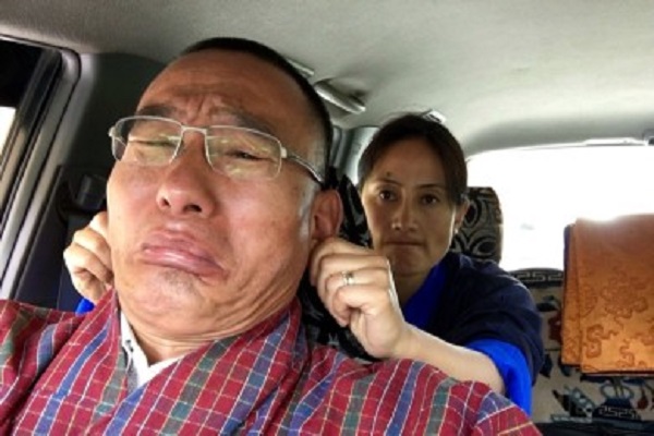 ভ্যালেন্টাইন ডে-তে নিজের টুইটার অ্যাকাউন্ট থেকে একটি ছবি পোস্ট করেছেন তোবগে। সেখানে ভুটানের প্রাক্তন প্রধানমন্ত্রীকে দেখা যাচ্ছে গাড়ি চালাতে। আর গাড়ির পিছনের আসনে বসে আছেন তার স্ত্রী তাশি দলমা। আর পিছনের সিটে বসে সেখান থেকেই তোবগের কান মুলে দিচ্ছেন তিনি!