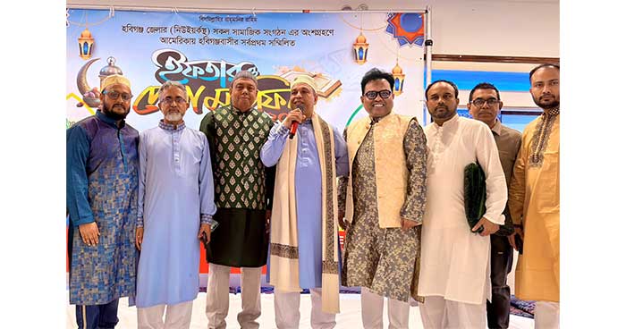 এতে শরিক হয়েছিলেন নিউইয়র্ক অঞ্চলে প্রবাসীদের সর্ববৃহৎ সংগঠন ‘বাংলাদেশ সোসাইটি’র সিনিয়র ভাইস প্রেসিডেন্ট মহিউদ্দিন দেওয়ান,সেক্রেটারি মোহাম্মদ আলী ও কমিউনিটি একটিভিস্ট তরিকুল ইসলাম মিঠু। বহুধা বিভক্ত কমিউনিটিতে ঐক্যের এই প্রয়াস সম্পর্কে অ্যাটর্নি মঈন চৌধুরী বলেন, একই এলাকার বাসিন্দা হলেও অনেকে একজন আরেকজনের দিতে তাকাতেও দ্বিধা করতেন। সামাজিক অনুষ্ঠানাদিতেও আমন্ত্রণ জানাতেও এমন একটি বাজে অবস্থা ছিল। এমনকি একে অপরের মুখও দেখতে চাইতেন না। এসব কিছুর পরিসমাপ্তির ক্ষেত্রে আজকের এ সম্মিলিত ইফতার মাহফিল অপরিসীম ভূমিকা রাখবে। কারণ সকলেই পাশাপাশি বসে কুশলাদি বিনিময় এবং ইফতার ভাগাভাগি করেছেন। আশা করছি অন্য জেলার বিবাদ-বিভক্তির অবসানে হবিগঞ্জবাসীর এই উদ্যোগ বিশেষ ভূমিকা রাখবে এবং তাহলেই আমাদের এই প্রয়াস সফল হবে।
