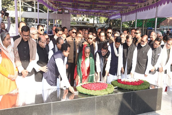 মঙ্গলবার সকাল ১০টার দিকে রাজধানীর ধানমন্ডি ৩২ নম্বরে বঙ্গবন্ধুর প্রতিকৃতিতে শ্রদ্ধা জানান প্রধানমন্ত্রী।