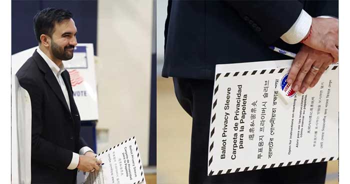 মামদানির হাতে ব্যালট-খামে বাংলায় লেখা