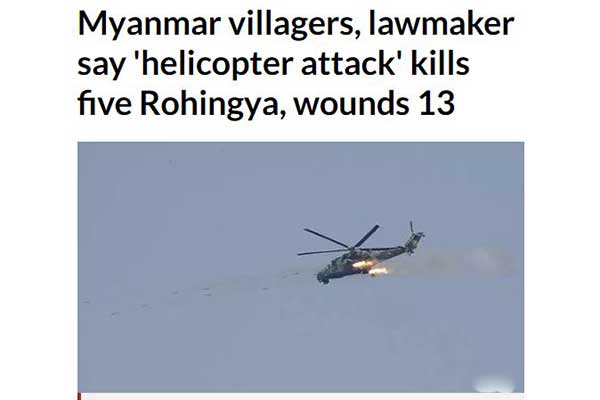 মিয়ানমারে রোহিঙ্গাদের উপর হেলিকপ্টার হামলা, নিহত ৫