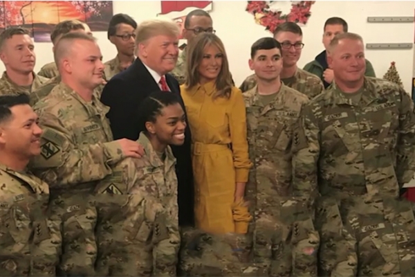 তিন ঘণ্টার এই সফরে সেনাদের সাথে কুশল বিনিময় করেন মার্কিন প্রেসিডেন্ট। হোয়াইট হাউজের প্রকাশিত এক ভিডিওতে দেখা যায় সেনাদের সাথে হাস্যজ্জল ট্রাম্প হাত মেলাচ্ছেন। এছাড়া সেনাদের অটোগ্রাফ দিতেও দেখা যায় তাকে। পরে একসাথে ছবিও তোলেন তিনি।