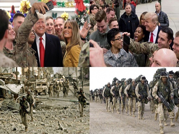 মার্কিন ইতিহাসের রীতিভঙ্গ করে এই প্রথম কোনো প্রেসিডেন্ট যুদ্ধরত দেশে সফর করলেন, তাও আবার দেশটির সরকার যখন মেক্সিকোর সীমান্ত দেয়াল তৈরির তহবিল দ্বন্দ্বে প্রায় অচল। ডোনাল্ড ট্রাম্প ও ফার্স্ট লেডি মেলানিয়া ট্রাম্প ইরাকে অবস্থিত মার্কিন সেনা কর্মকর্তাদের সঙ্গে বুধবার (২৫ ডিসেম্বর) বড়দিনের শুভেচ্ছা বিনিময় করতে উড়াল দেয়।