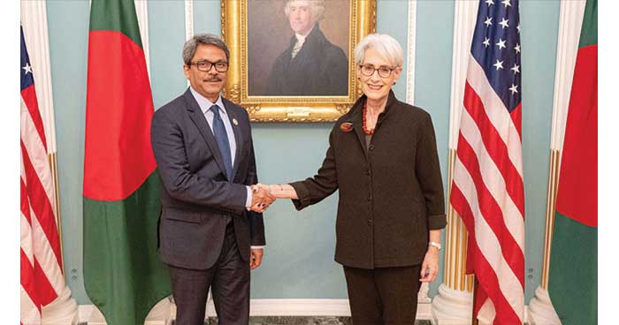 বাংলাদেশের শ্রম খাতে অগ্রগতির কথা উল্লে­খ করে ডেপুটি সেক্রেটারি শেরম্যান দ্বিপাক্ষিক বাণিজ্য বাড়াতে দুই দেশের মধ্যে সহযোগিতা জোরদারের ওপর জোর দেন। ইউক্রেন যুদ্ধ, খাদ্য ও জ্বালানি নিরাপত্তা এবং বাংলাদেশের আগামী জাতীয় সংসদ নির্বাচনের বিষয়গুলোও আলোচনায় স্থান পায়।