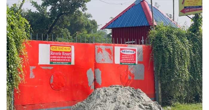 গাজীপুরে এক বিএনপি নেতার বিরুদ্ধে একটি রিসোর্ট বন্ধ হয়ে দেওয়ার অভিযোগ উঠেছে। গাজীপুর মহানগরীর ২০ নম্বর ওয়ার্ডের টেক কাথোরা এলাকার রিভেরি নামের একটি রিসোর্টের প্রধান ফটকের সামনে বালি ফেলে প্রতিবন্ধকতা তৈরি করা হয়েছে। রিসোর্টে গেস্ট প্রবেশে বাধা দেওয়া হচ্ছে বলেও জানা গেছে।