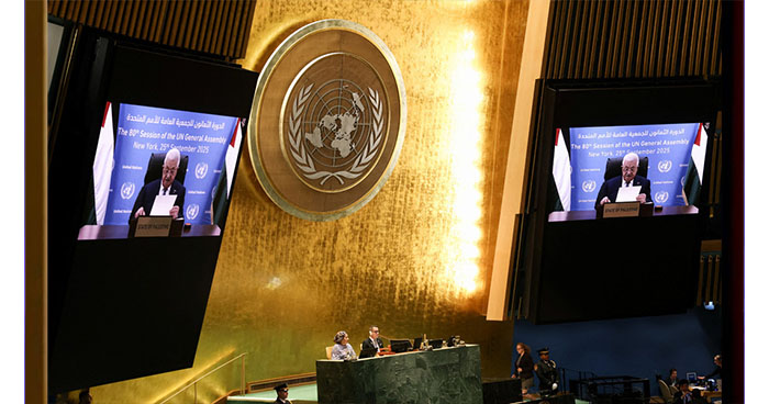 ফ্রান্স নেতৃত্বে একটি বিশেষ শীর্ষ সম্মেলন হওয়ার কয়েকদিন পর এবং কয়েকটি পশ্চিমা শক্তি ফিলিস্তিন রাষ্ট্রকে স্বীকৃতি দেওয়ার প্রেক্ষাপটে, ৮৯ বছর বয়সী এই অভিজ্ঞ নেতা যুক্তরাষ্ট্রের ভিসা প্রত্যাখ্যানের কারণে নিউইয়র্কে সরাসরি উপস্থিত হতে না পেরে ভিডিও বার্তার মাধ্যমে জাতিসংঘ সাধারণ অধিবেশনে ভাষণ দেন।