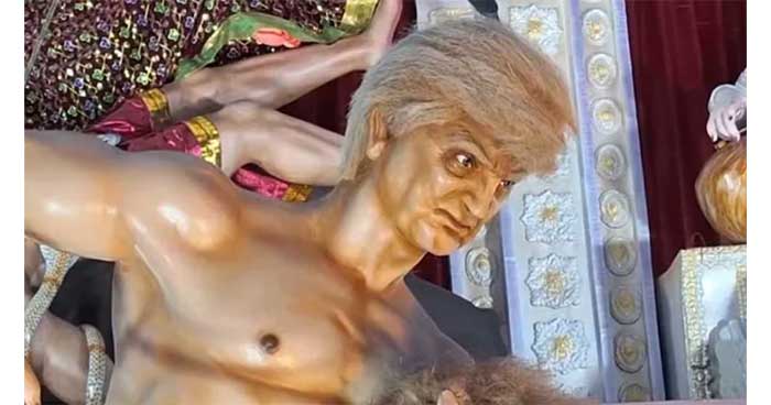 মুর্শিদাবাদে পূজামণ্ডপে অসুর রূপে ডোনাল্ড ট্রাম্প